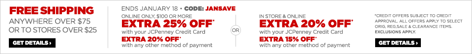 JavaScript is disabled in your browser. Enable Javascript or upgrade to a Javascript capable browser to use jcp.com. click here for assistance.