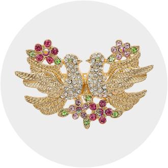 Make a bold statement with whimsical jewelry featuring bright colors and fun motifs. You'll find nature-inspired pins and pendants featuring flowers, butterflies, jungle animals, and sea creatures; chunky bracelets and necklaces accented with oversized stones; and fun pieces with symbols like music notes, celestial bodies, and pets to display your interests. For a more traditional look that goes effortlessly from desk to dinner, choose jewelry sets and individual pieces featuring antique-inspired designs, dainty stones, and minimalist lines.