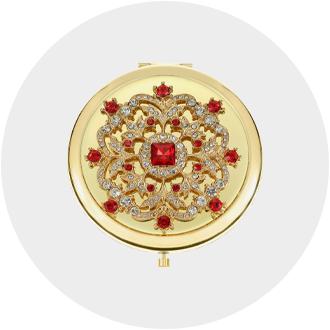 Make a bold statement with whimsical jewelry featuring bright colors and fun motifs. You'll find nature-inspired pins and pendants featuring flowers, butterflies, jungle animals, and sea creatures; chunky bracelets and necklaces accented with oversized stones; and fun pieces with symbols like music notes, celestial bodies, and pets to display your interests. For a more traditional look that goes effortlessly from desk to dinner, choose jewelry sets and individual pieces featuring antique-inspired designs, dainty stones, and minimalist lines.