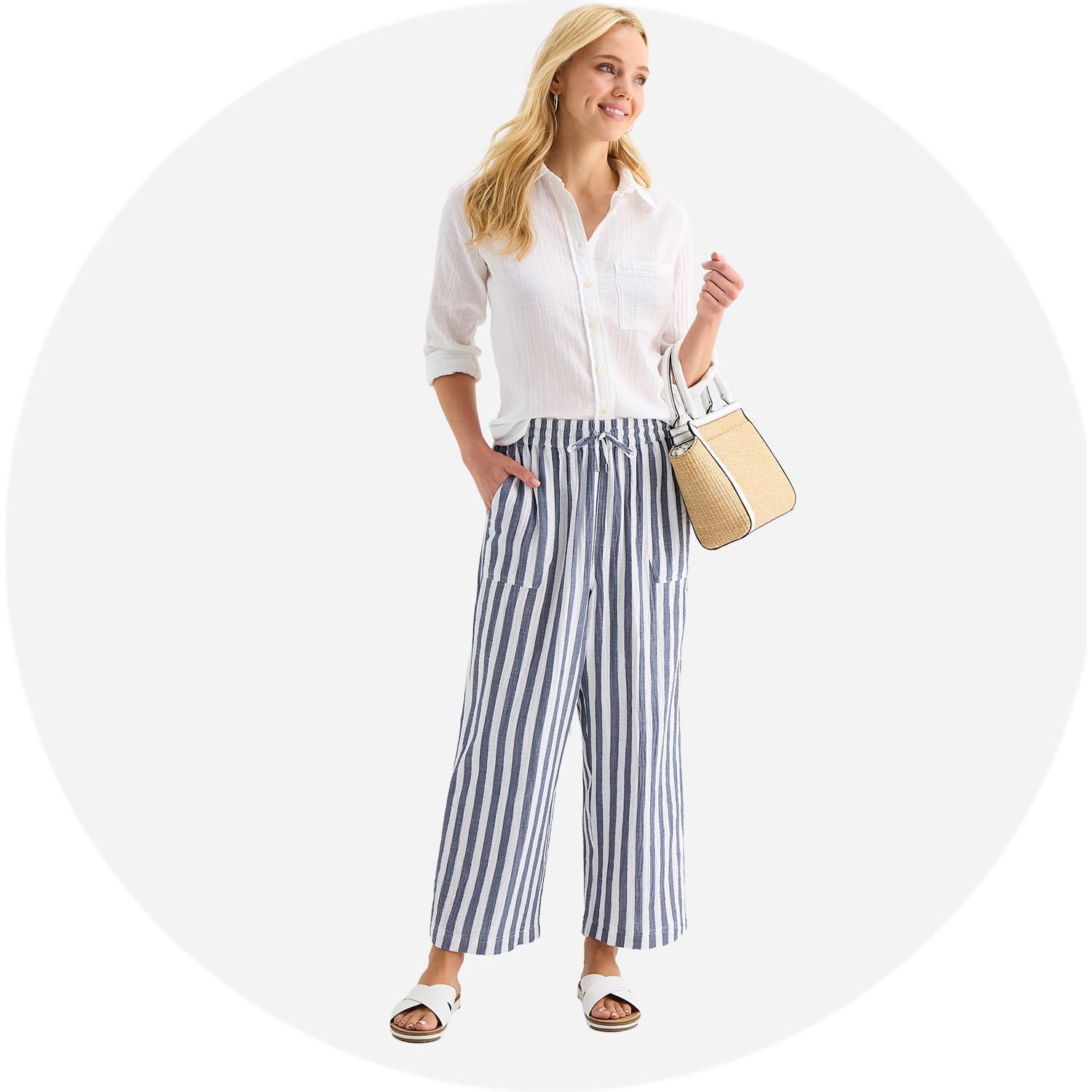 Say goodbye to boring basics, because our collection of women's capris is brimming with styles designed to make you look and feel your best. From classic neutrals to eye-catching prints, we’ve got options for every style personality. Our basic black capri pants come in a variety of cuts and lengths you can easily pair with any top, whether it’s a crisp white blouse or a graphic tee. If you’re feeling bold, explore vibrant florals, stripes, gingham checks, and seasonal shades that instantly brighten your look.