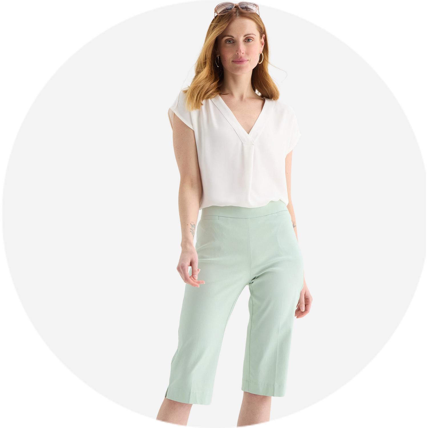 When it comes to versatile wardrobe staples, women's capri pants are a style essential you’ll reach for again and again. Loved for their easy-going style and undeniable comfort, capri pants make it simple to put together polished looks without overthinking it. JCPenney is thrilled to bring you a wide variety of capri pants for women from top brands you know and trust like Alfred Dunner, St. John’s Bay, Liz Claiborne, and more.