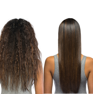 Straightens and smooths hair by infusing the natural keratin into the damaged strands, eliminating frizz and straightening hair
