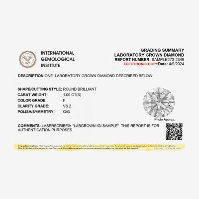 (F / VS2) Womens 1 CT. Lab-Grown White Diamond 14K Gold Round Solitaire Engagement Ring