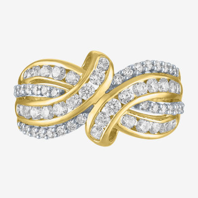(G-H / I1-I2) Womens 1 CT. T.W. Lab Grown White Diamond 10K Gold Bypass Cocktail Ring