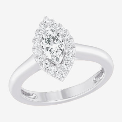 (G-H/SI1-SI2) Womens 1 CT. T.W. Lab Grown White Diamond 10K Gold Marquise Halo Engagement Ring