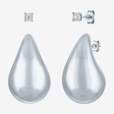 (G-H / Si2-I1) Womens 1/10 CT. T.W. Lab Grown White Diamond Sterling Silver Earring Set