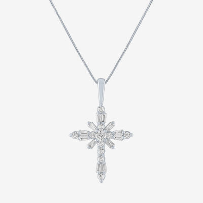 (G-H / Si2-I1) Womens 1/3 CT. T.W. Lab Grown White Diamond 10K Gold Cross 18 Inch Pendant Necklace