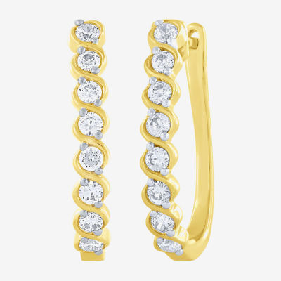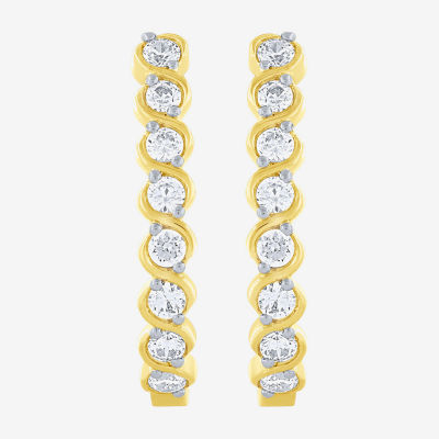 (G-Si2) Womens 1/2 CT. T.W. Lab Grown White Diamond 10K Gold 18.8mm Hoop Earrings