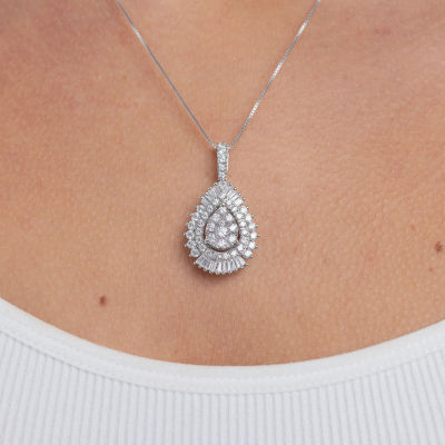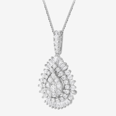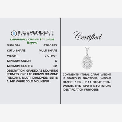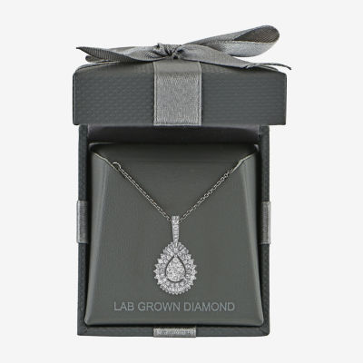 (G / Si2) Womens 2 CT. T.W. Lab Grown White Diamond 14K White Gold Pear 18 Inch Pendant Necklace