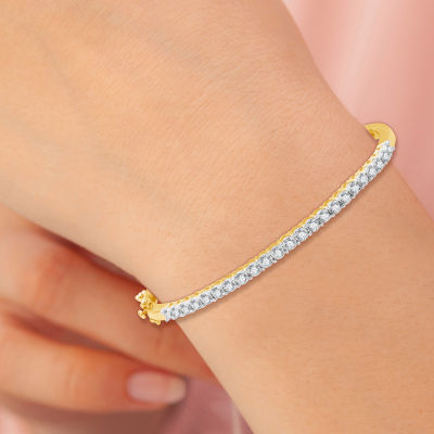 (H-I / I1) Womens 1 CT. T.W. Lab Grown White Diamond 14K Gold Over Silver Sterling Silver Bangle Bracelet