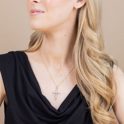 (H-I / I1) Womens 1/2 CT. T.W. Lab Grown White Diamond 10K Two Tone Gold Cross 18 Inch Pendant Necklace