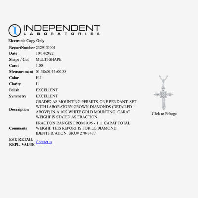 Write a ReviewAsk a Question2707477product(H-I / I1) Womens 1 CT. T.W. Lab Grown White Diamond 10K White Gold Cross 18 Inch Pendant Necklace12345678Add to CartProduct DetailsShipping & Returns Shop the Collection(H-I / I1) Womens 1 CT. T.W. L...(G Womens 1 CT. T.W. Lab Grown...Womens 1 CT. T.W. Lab Grown Wh...Womens 1 CT. T.W. Lab Grown Wh...Shop The LookReviewsQuestions & AnswersAdd To Cart