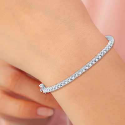 (H-I / I1) Womens 1 CT. T.W. Lab Grown White Diamond Sterling Silver Bangle Bracelet