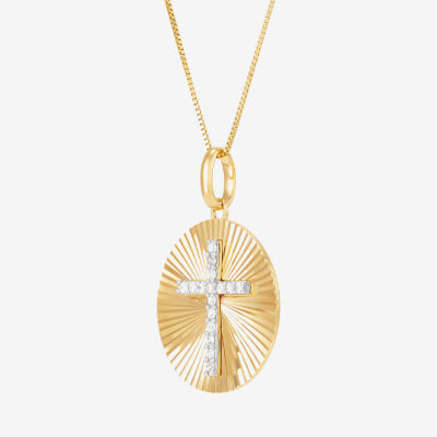 (H-I / Si1-Si2) Womens 1/10 CT. T.W. Lab Grown White Diamond 14K Gold Cross 18 Inch Pendant Necklace