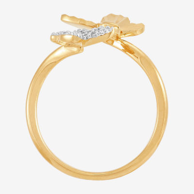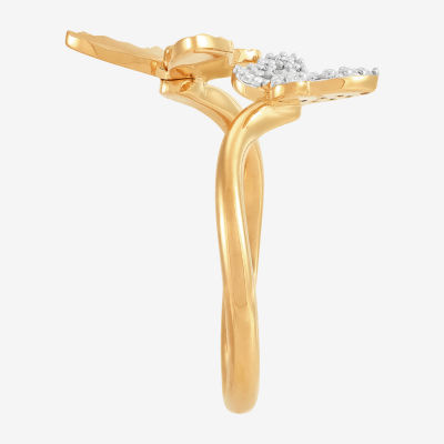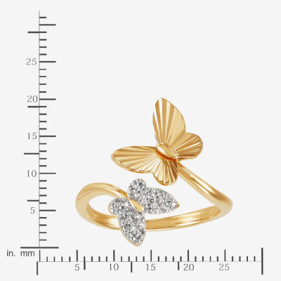 (H-I / Si1-Si2) Womens 1/10 CT. T.W. Lab Grown White Diamond 14K Gold Over Silver Sterling Silver Butterfly Bypass Cocktail Ring