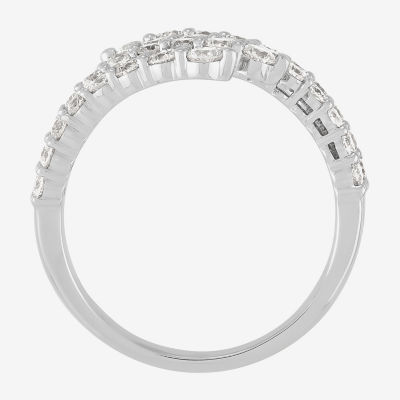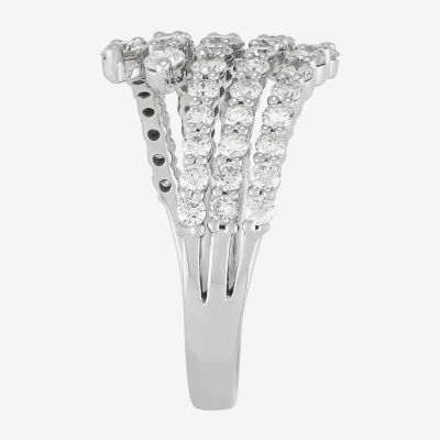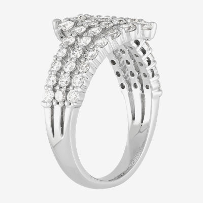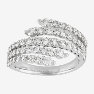 (H-I/Si2) Womens 2.5MM 1 1/2 CT. T.W. Lab Grown White Diamond 10K White Gold Bypass Band
