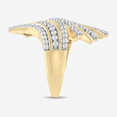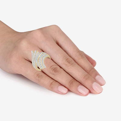 (H / I1-I2) Womens 1 CT. T.W. Lab Grown White Diamond 14K Gold Over Silver Bypass Cocktail Ring