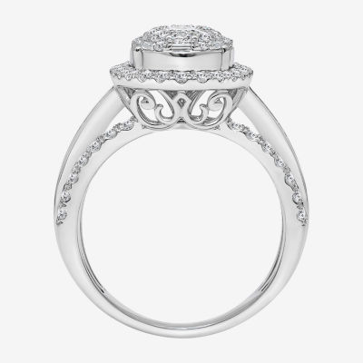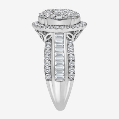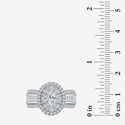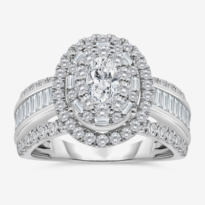 (I / I1) Womens 2 CT. T.W. Lab Grown White Diamond 10K Gold Oval Side Stone Engagement Ring