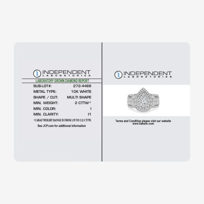 (I / I1) Womens 2 CT. T.W. Lab Grown White Diamond 10K White Gold Pear Side Stone Halo Engagement Ring