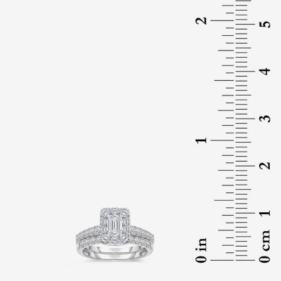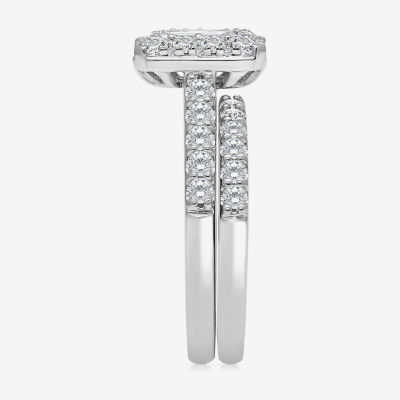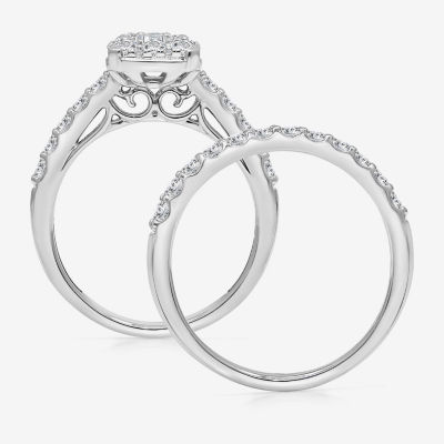 (I / I1) Womens 2 CT. T.W. Lab Grown White Diamond 10K White Gold Side Stone Halo Bridal Set