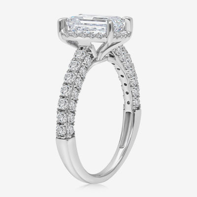 (I / I1) Womens 3 CT. T.W. Lab Grown White Diamond 10K White Gold Side Stone Halo Engagement Ring