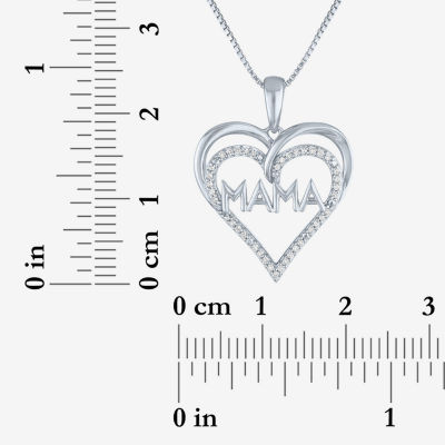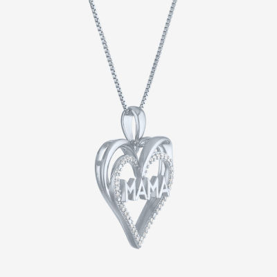 "Mama" Womens 1/10 CT. T.W. Natural White Diamond Sterling Silver Heart 18 Inch Pendant Necklace