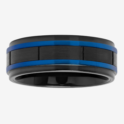 "Thin Blue Line" Mens 8MM Tungsten Wedding Band