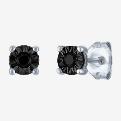 1/10 CT. T.W. Natural Black Diamond Sterling Silver 5.5mm Round Stud Earrings