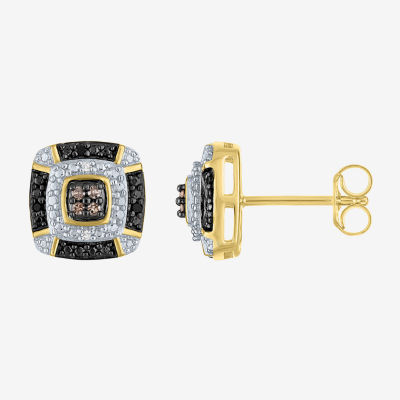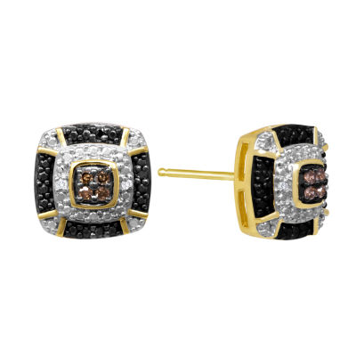 1/10 CT.T.W. Natural White, Champagne and Color-Enhanced Black Diamond Earrings