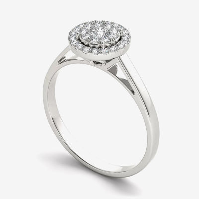 1/3 CT.T.W. Natural Diamond 10K White Gold Round Cluster Engagement Ring