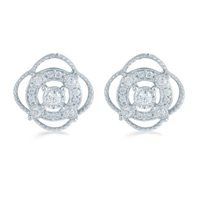 1/5 CT. Natural White Diamond Sterling Silver 10.6mm Stud Earrings