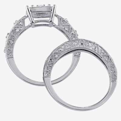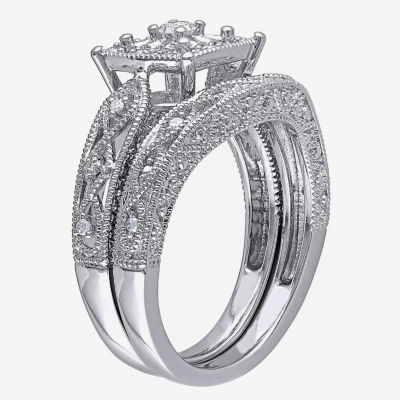 1/5 CT.T.W. Natural Diamond Sterling Silver Vintage Style Bridal Set