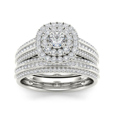 1 CT.T.W. Natural Diamond Halo 10K White Gold Bridal Ring Set