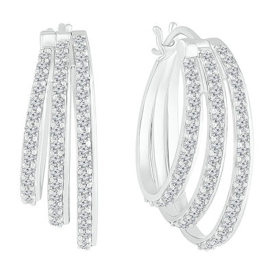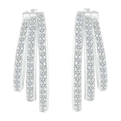 Womens 1 CT. T.W. Natural White Diamond Sterling Silver 24mm Hoop Earrings