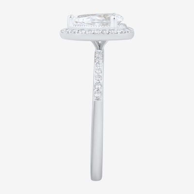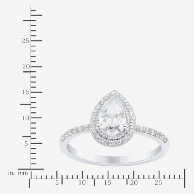 1 CT.T.W. Lab-Grown (H-I / SI1-SI2) Diamond Pear Side Stone Halo Engagement Ring in 10K Gold
