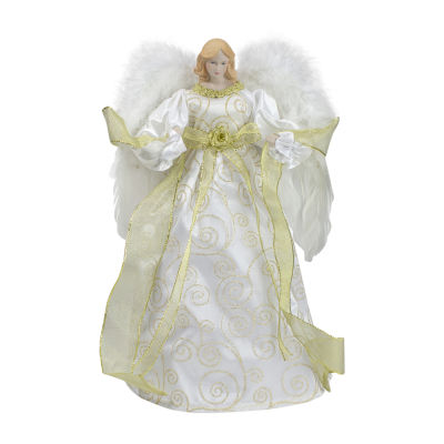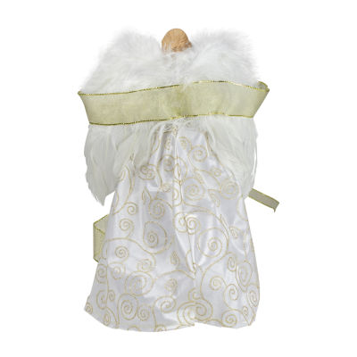 14'' Lighted White and Gold Angel in a Dress Christmas Tree Topper - Warm White Lights