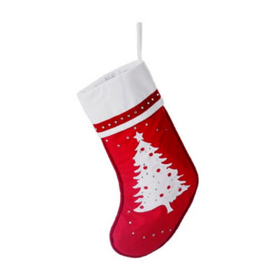 22'' Red and White Embroidered Tree with Rhinestones Christmas Stocking