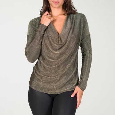 24seven Comfort Apparel Womens Cowl Neck Long Sleeve Blouse