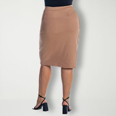 24seven Comfort Apparel Womens Plus Mid Rise Pencil Skirt