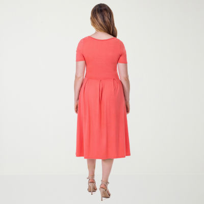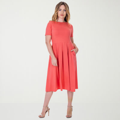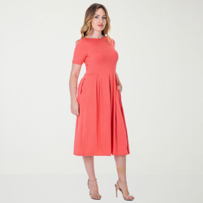 new!24seven Comfort Apparel Womens Short Sleeve Midi A-Line Dress