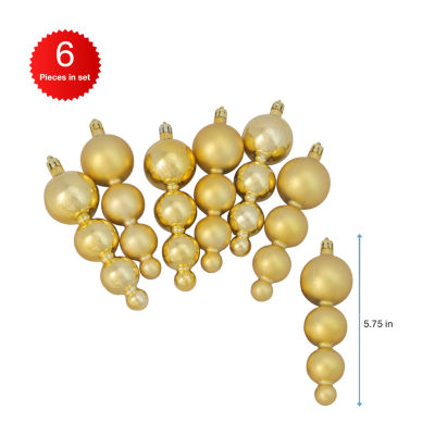 6ct Vegas Gold Shatterproof 2-Finish Christmas Ornaments 5.75"