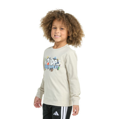 3 ReviewsAsk a Question3250543Colorsizeadidas Toddler Boys Crew Neck Long Sleeve Regular Fit Graphic T-ShirtShop all Adidas12345678Add to CartFeatures100% CottonMachine WashProduct DetailsShipping & Returns Shop The LookReviews(3)Questions & AnswersAdd To Cart