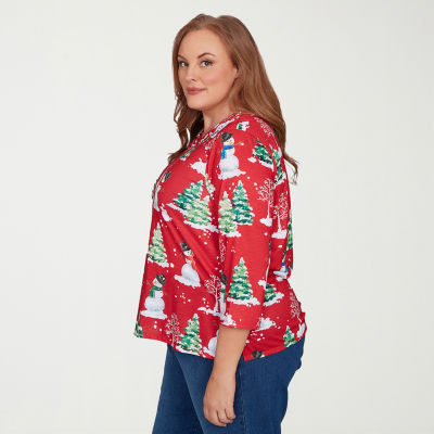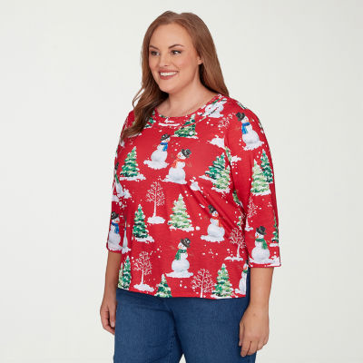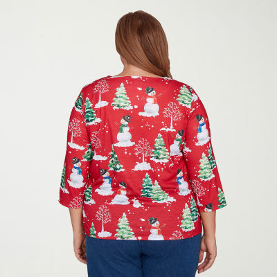 Alfred Dunner Classics Womens Plus Crew Neck 3/4 Sleeve T-Shirt