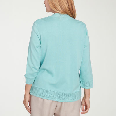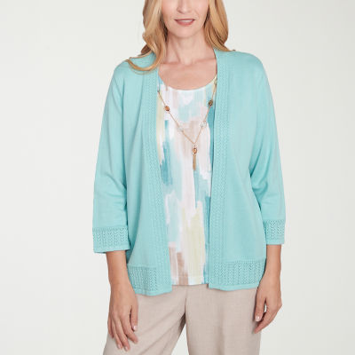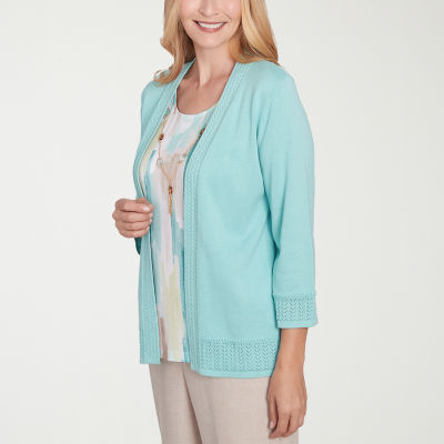 Alfred Dunner Kensington Garden Womens Round Neck 3/4 Sleeve Layered Sweater