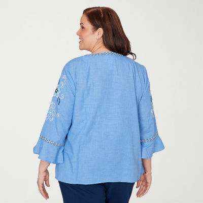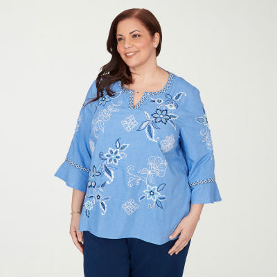Write a ReviewAsk a Question8962534ColorsizeSize Chartnew!Alfred Dunner Mykonos Womens Plus Split Crew Neck 3/4 Sleeve Embroidered BlouseShop all Alfred Dunner12345678Add to CartFeaturesEmbroideredMachine WashProduct DetailsSize ChartShipping & Returns Alfred Dunner Women's Size GuideShop The LookReviewsQuestions & AnswersAdd To Cart
