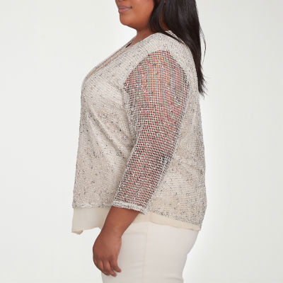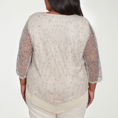 Alfred Dunner Natural Instinct Womens Plus Crew Neck 3/4 Sleeve T-Shirt