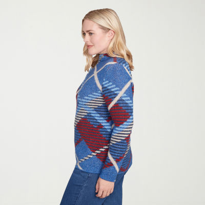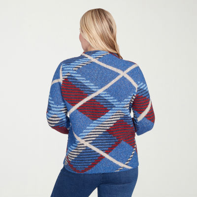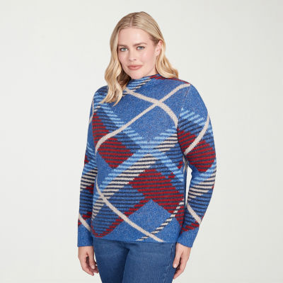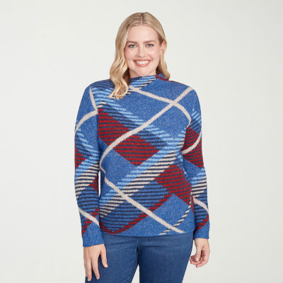 Alfred Dunner Sunset Canyon Womens Mock Neck Long Sleeve Plaid Pullover Sweater