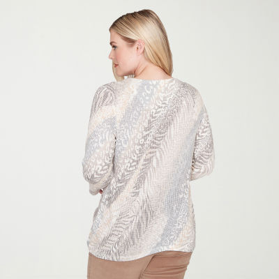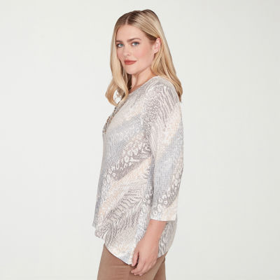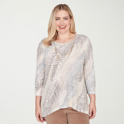 Alfred Dunner Vienna Womens Plus Crew Neck 3/4 Sleeve T-Shirt