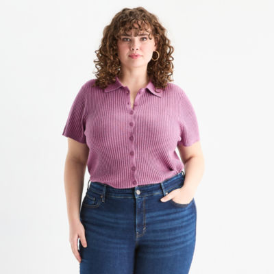 a.n.a Plus Womens Short Sleeve Pullover Sweater