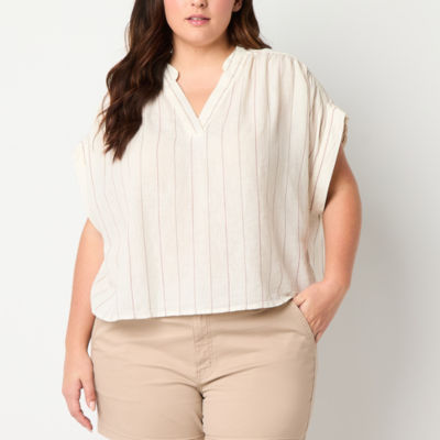 a.n.a Womens Plus Split Crew Neck Short Sleeve Blouse